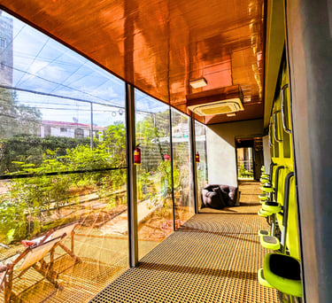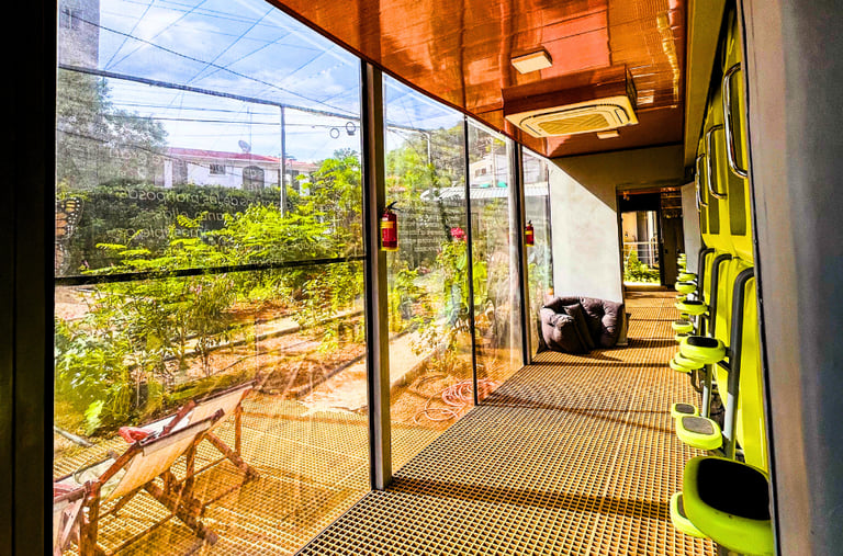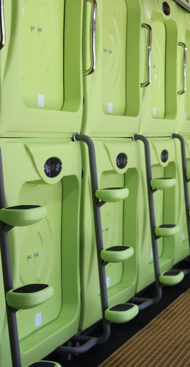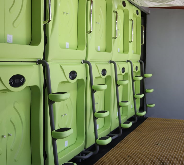 Espacio privado y seguro en nuestra cápsula diseñada exclusivamente para mujeres. Cómoda, elegante y acogedora, perfecta para una estancia relajante. Cada módulo cuenta con 3 duchas y 3 baños compartidos.